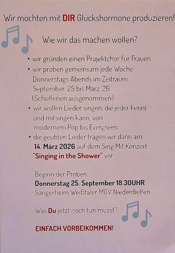 Da ist es , unser neues Projekt! Wir freuen uns schon sehr, Euch alle am 25.09.2025 im Sängerheim kennen zu lernen!